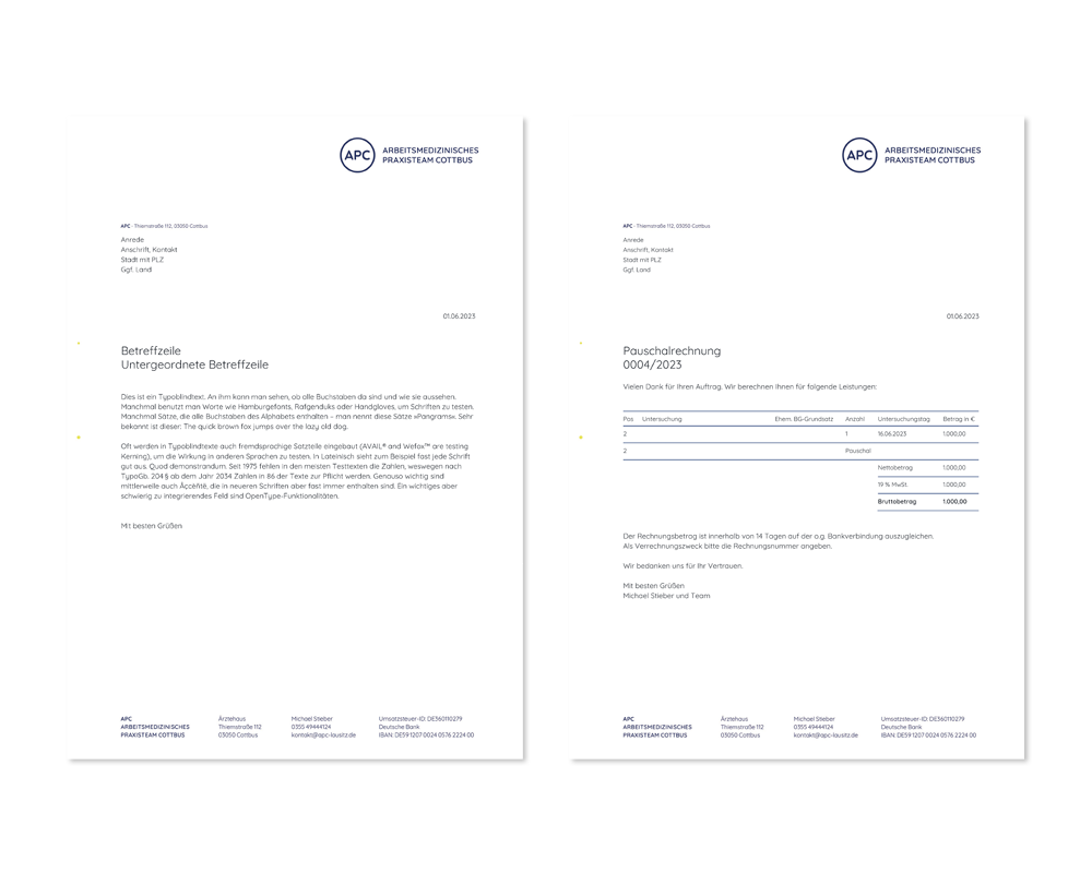 Wir erarbeiteten ein umfassendes Corporate Design für das Arbeitsmedizinisches Praxisteam Cottbus.