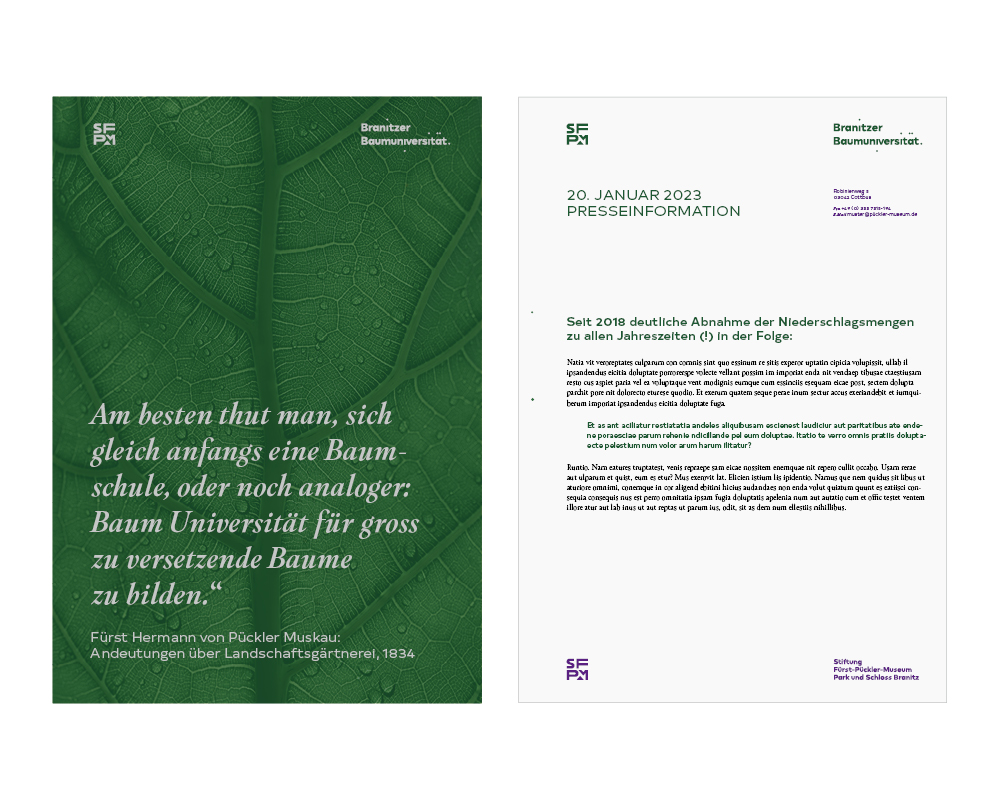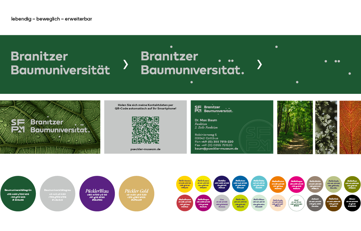 2022 entwickelten wir ausgehen von der Dachmarke SFPM eine Untermarke für die Baumuniversität. Das Markenlogo ist lebendig, beweglich und erweiterbar (wachsend). Wir haben eine klare, dynamische und organische Bild- und Formsprache entwickelt. Als Ergänzung und Gestaltungselement findet sich der Kreis wieder, als Zentrum und Keimzelle des Lebens.