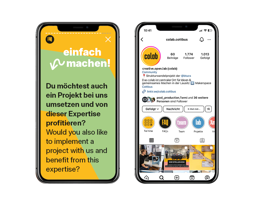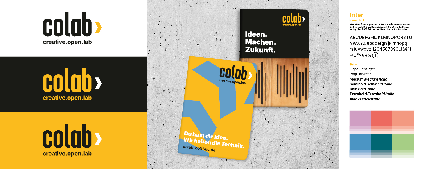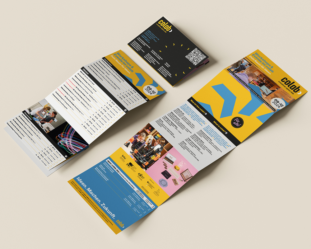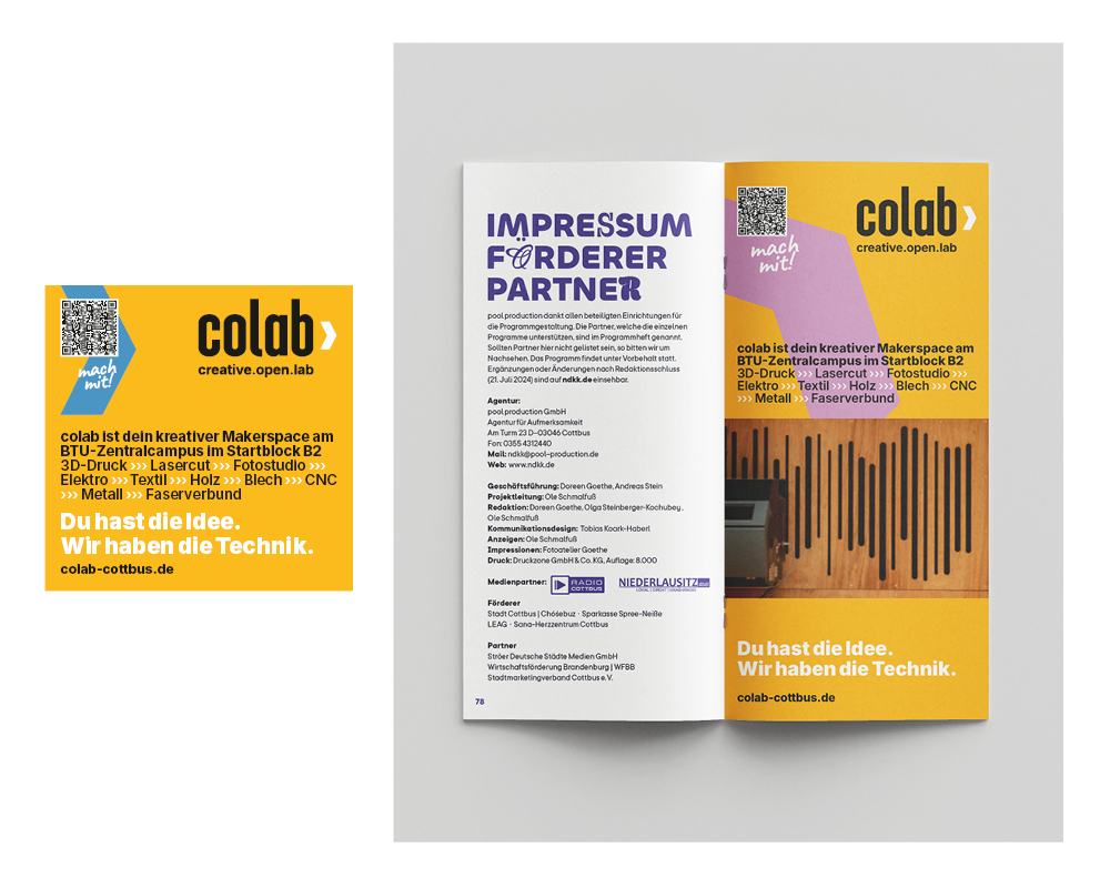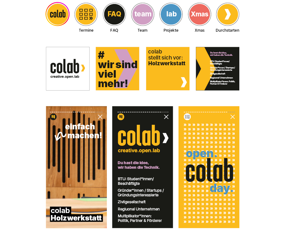 pool production überarbeitete das Corporate Design für das COLAB. Das umfasste die Marke, das Wording und Storytelling, die Farbwelt, Key Visuals sowie die Erarbeitung von verschiedenen Kommunikationsmitteln und Social Media-Vorlagen.