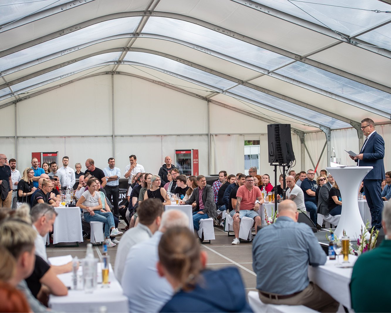 Zur Eröffnung des neuen Werkes konzipierten und organisierten wir die Eröffnungsparty für 200 Gäste - von der Einladung, dem Gästemanagement, dem Catering bis zur Technik und dem Programm.