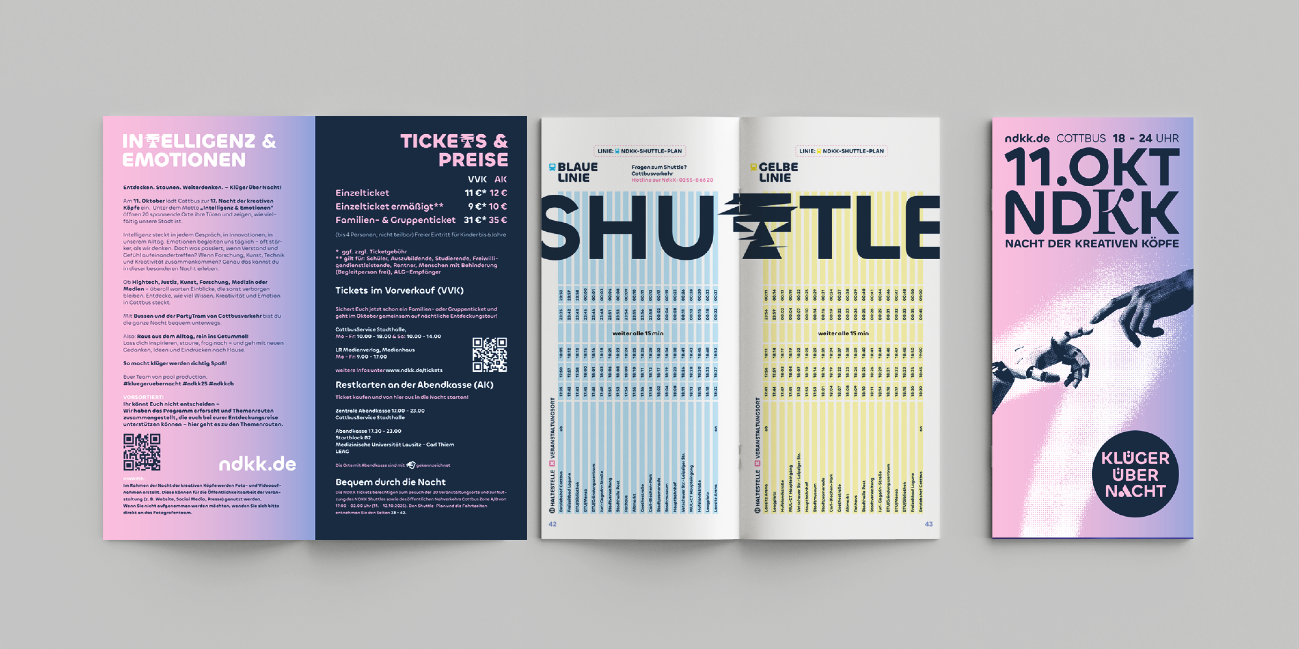 Wir lenken zur Nacht der kreativen Köpfe die öffentliche Aufmerksamkeit seit 2007 auf ausgewählte Institutionen und Unternehmen in Cottbus. Rund 6.000 Besucher wagen jährlich unter dem Motto „Klüger über Nacht“ einen Blick hinter die Kulissen der Stadt.